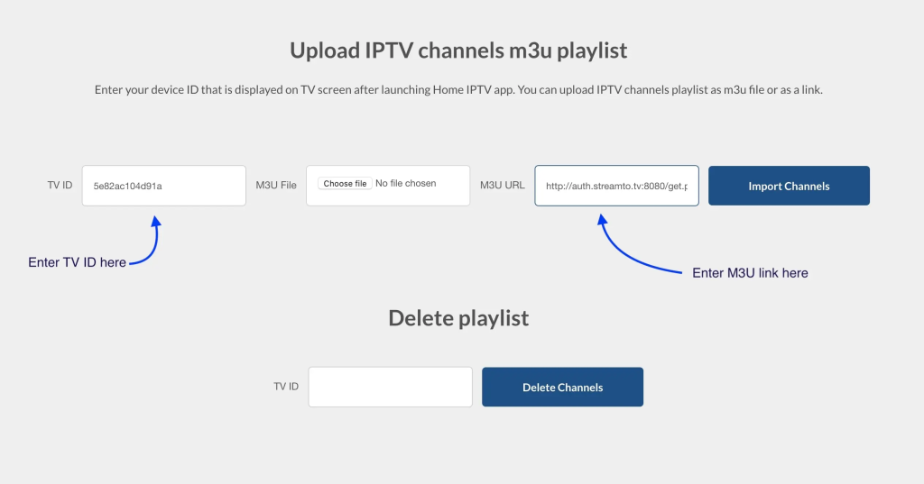 Open Home IPTV upload portal : https://www.homeiptv.com/#pages
